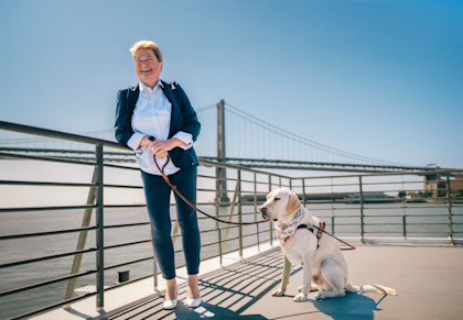 Sharon and her guide dog, Pilot, on their daily ferry ride to work
